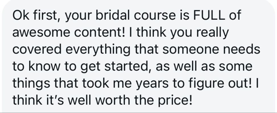 If this course helps you book even one bridal client, you’ve already made your money back.