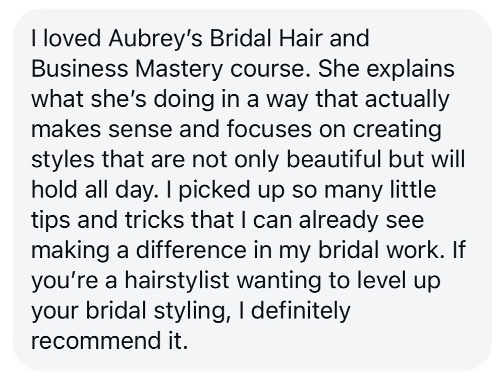 I started doing bridal hair at 17, and while I loved it, I had to figure out so much on my own. From learning how to perfect styles to navigating the business side, it was a lot of trial and error. That’s why I created this course—because I wish 17-year-old me had something like this to help me start with more confidence + success.